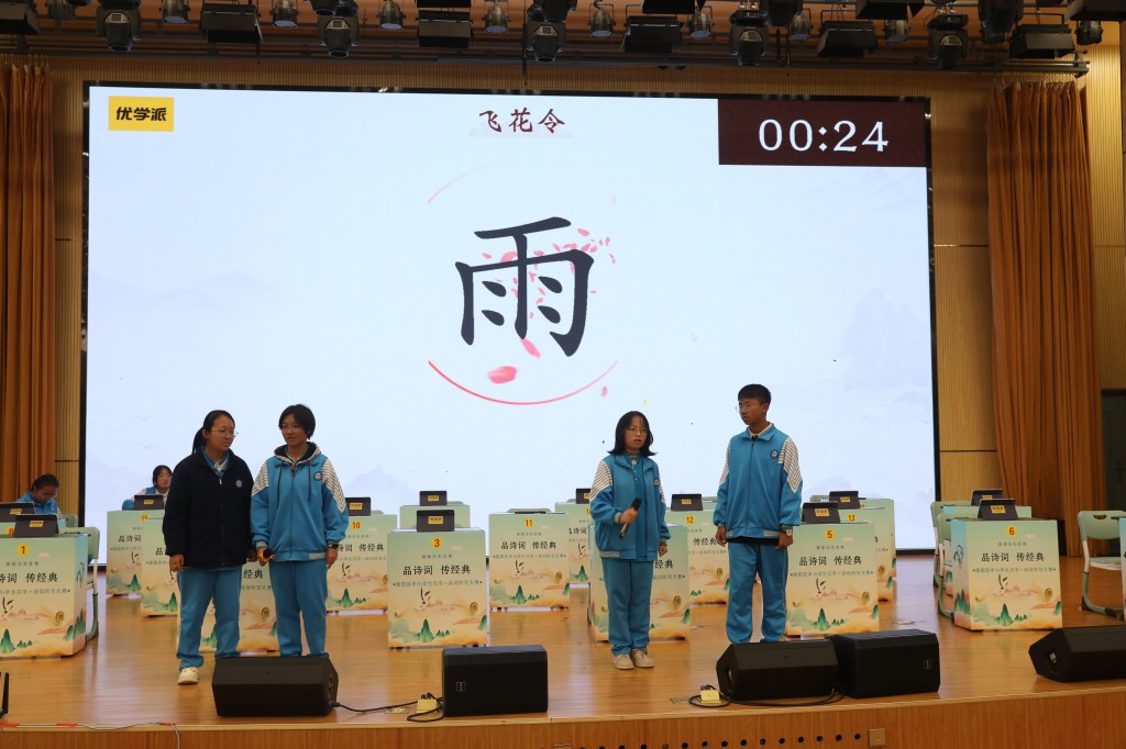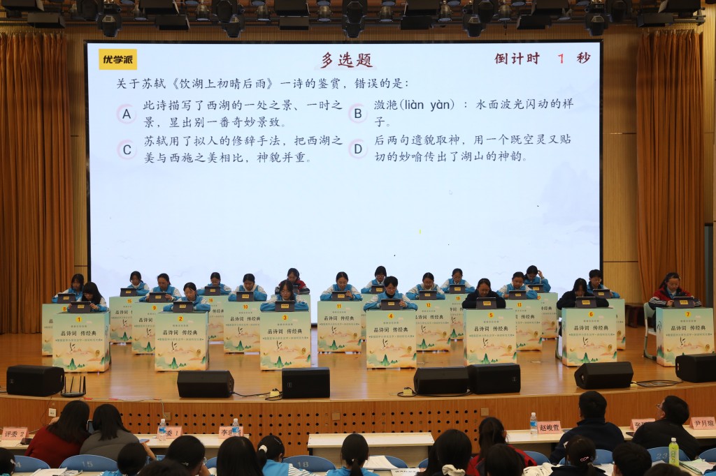 本次擂台赛以“弘扬经典,浸润书香”为核心,题目涵盖初中课内必背古诗词及课外积累篇目,设置诗词接龙、点字成诗、飞花令等七大题型,通过晋级赛与决赛两大阶段层层筛选,全方位考验选手的诗词积累与临场应变能力。中国汉字听写大会技术支持方、优学派公司提供的专业设备与题库,更让比赛兼具专业性与趣味性。