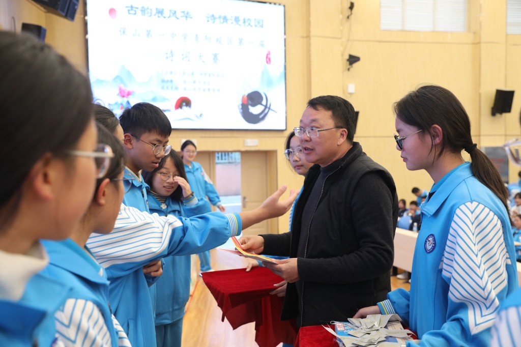 “一曲诗词穿越千年韵,满腔风雅激荡少年心。”为全面贯彻素质教育理念,深入弘扬中华优秀传统文化,营造富有书香气息的校园文化氛围,激发我校学生热爱母语、学习经典的热情。12月3日14:10,保山一中青阳校区树人堂内座无虚席,我校联合保山市新华书店、优学派共同举办的第一届古诗词擂台赛在此拉开帷幕。